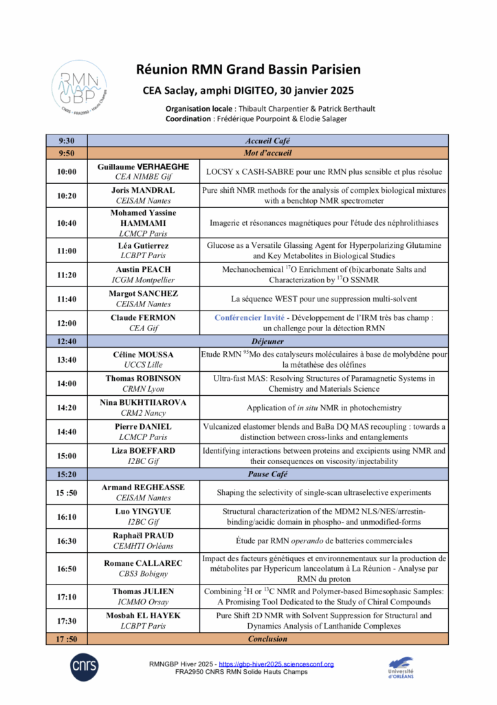 A la suite de la réunion RMN GBP, une demi-journée thématique : « Echange et mise en commun d’expériences en spectroscopie RQN » se tiendra le 31 janvier (matin) à Paris.