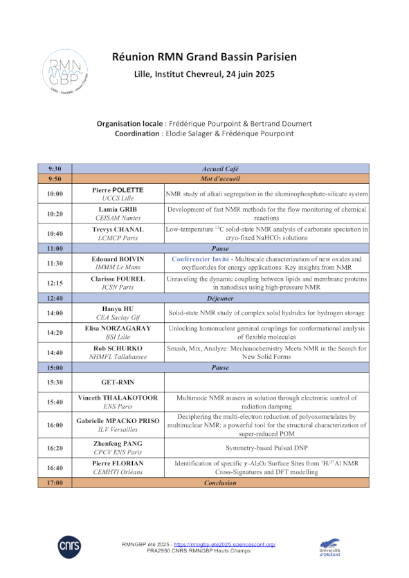 Nous aurons également le plaisir d’écouter une conférence invitée de Edouard Boivin, de l’IMMM au Mans, spécialisé en cristallochimie des matériaux.